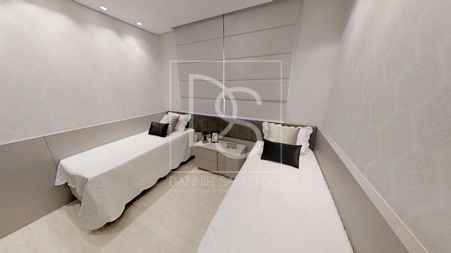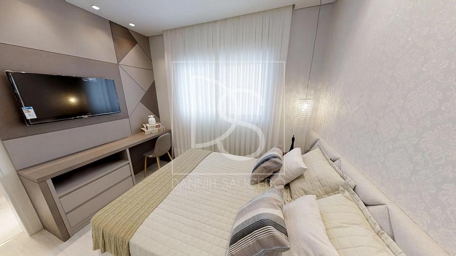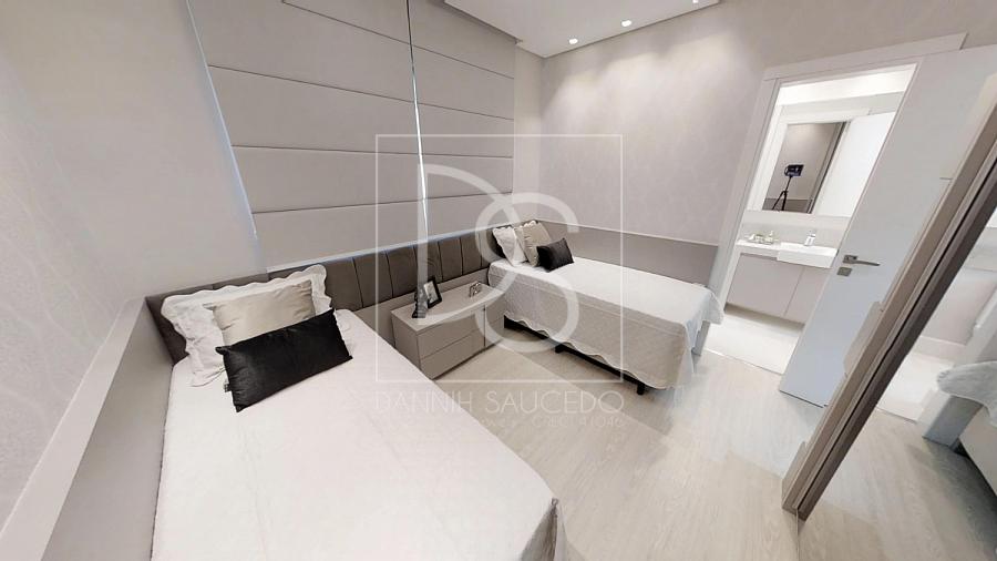 As dimensões generosas dos apartamentos, 237 m² de área privativa, agradam toda a família. Além  da máster com sacada, closet com espaço além do padrão, as outras três suítes tem equilíbrio entre si.  Todas com 12 m². A flexibilidade de layout do apartamento permite diferentes aplicações de um  mesmo espaço.