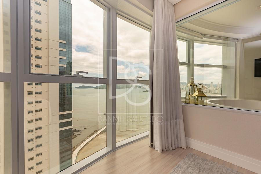Este apartamento decorado à venda está localizado em andar alto do Infinity Coast, proporcionando uma vista deslumbrante do mar e da cidade. São 164,96 m² de área privativa, com 3 suítes, sendo uma delas uma suíte máster equipada com hidromassagem.