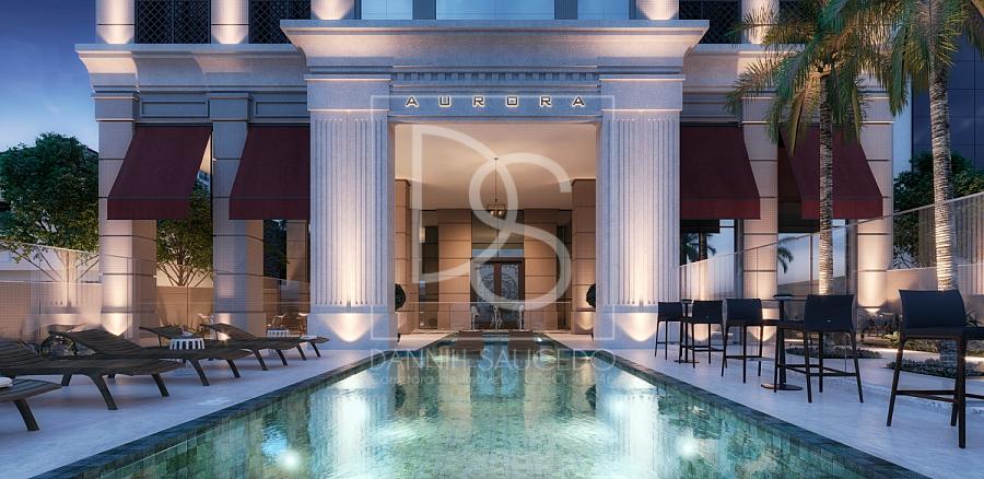 O Aurora Exclusive Home foi projetado com uma arquitetura neoclássica de tirar o fôlego, assinada pelo renomado arquiteto Flávio Schiavon. A sala comercial oferece uma excelente visibilidade e conta com uma fachada de vidro ampla, proporcionando um ambiente iluminado e moderno. O empreendimento é conhecido por seu acabamento de alto padrão, destacando-se pelas colunas com capitéis e a combinação de luxo e sofisticação em cada detalhe.